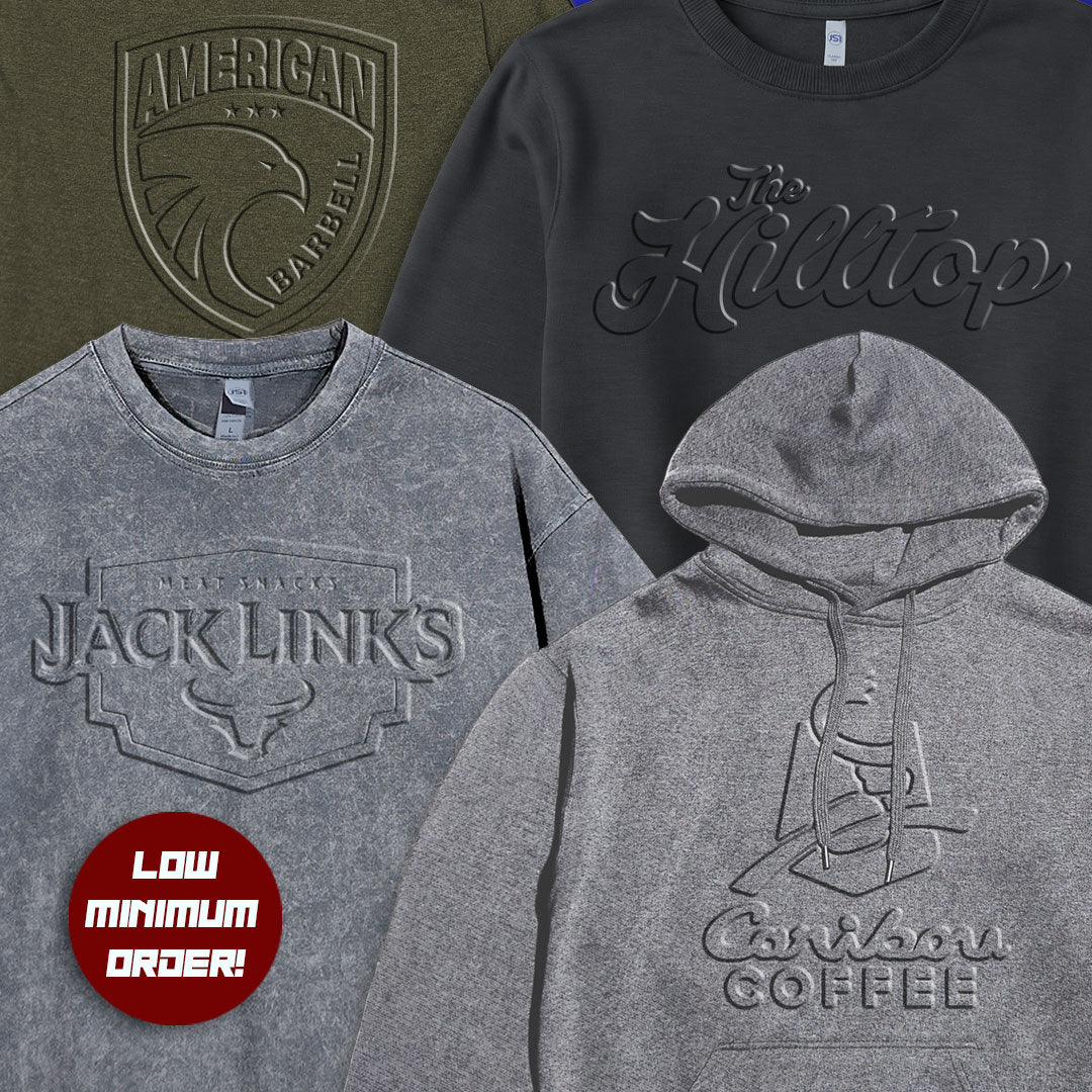 Embossed logos add dimension and depth, giving your garment a high-end, retail-ready feel that customers immediately notice.