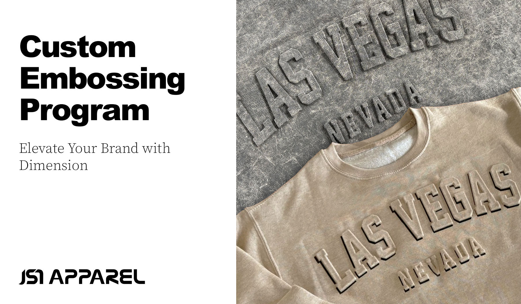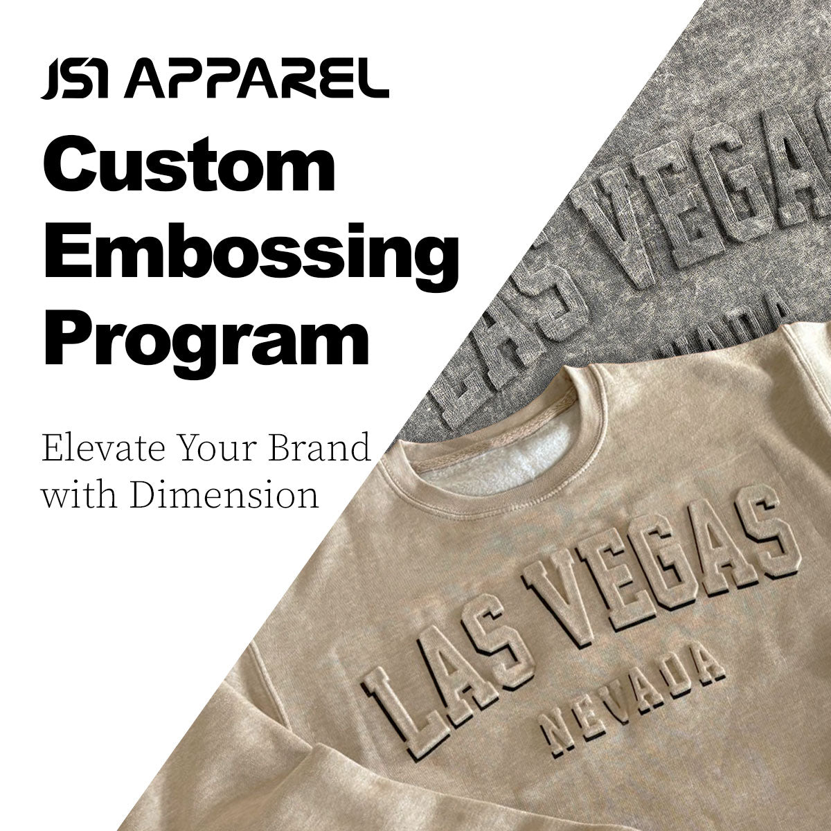 JS7 embossing works especially well on fleece, hoodies, crewnecks, and heavyweight tees, where fabric structure allows for crisp, defined impressions.
